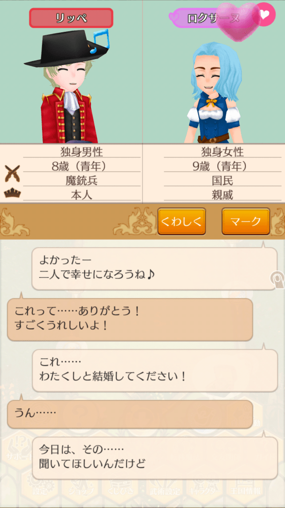 婚約者探しをしてます笑イネスちゃん可愛いけど2つ上か…keepするのが大変そうだな…💦クロサーヌちゃんに決めようかな!
